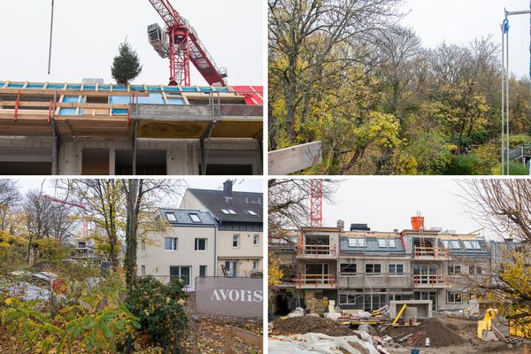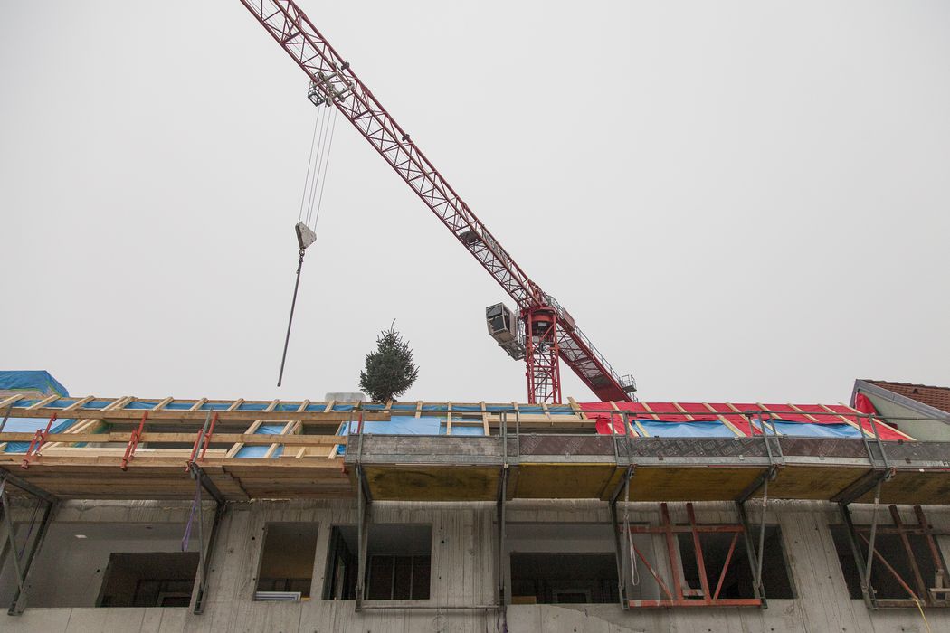 Beim Rundgang zeigte sich eindrucksvoll, wie weit LIESING GARDENS bereits gediehen ist. Der Rohbau steht, das Schrägdach ist nahezu fertiggestellt – die Zimmererarbeiten sind abgeschlossen, aktuell arbeitet der Spengler am Feinschliff.