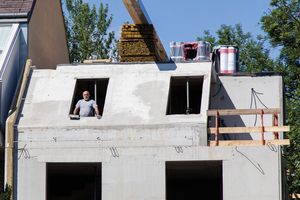 Wie’s um den Bau steht? Das Doppelhaus direkt am Liesingbach ist im Rohbau bereits fertig – hier wird dieser Tage das Gerüst gestellt, in wenigen Wochen kommt das Dach drauf, und schon startet der Innenausbau.