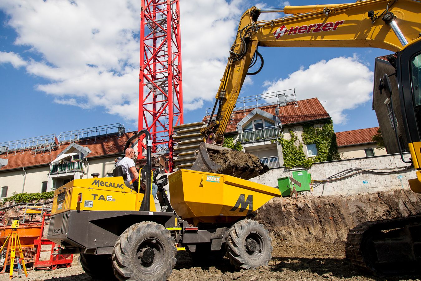 Im vorderen Bereich des Grundstücks läuft es ebenfalls rund: 22 von 25 Geothermie-Bohrungen sind bereits geschafft, bis zu 90 Meter tief – nachhaltige Wärmeversorgung ist in der Pipeline! Gleichzeitig wird schon fleißig ausgehoben, auf dem späteren Allgemeingarten türmen sich die Erdhaufen wie kleine Hügelketten. Sobald der Aushub abgeschlossen ist, geht’s los mit der Bodenplatte, danach folgt der bewährte Bau-Rhythmus: Wände – Decke – Wände – Decke, Etage für Etage. Pro Geschoss rechnen wir mit etwa 4–5 Wochen. Und wenn alles nach Plan läuft, feiern wir pünktlich zum Sommer-Ausklang die Gleichenfeier! Danach: Dach drauf, Ausbau rein – und Schritt für Schritt zum neuen Zuhause.
