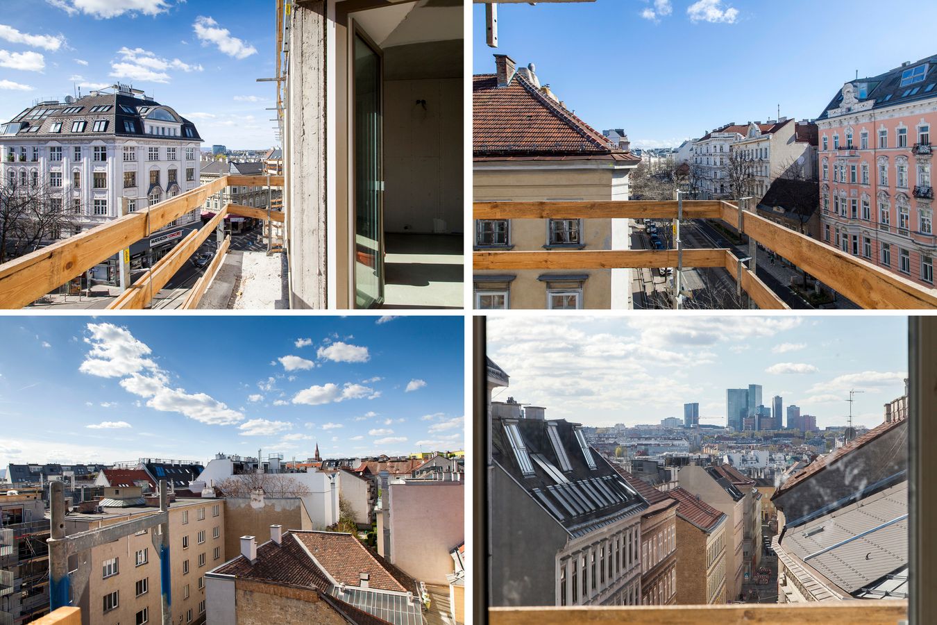 Ausblicke auf die Wiener Dachlandschaft im abendlichen Sonnenlicht.