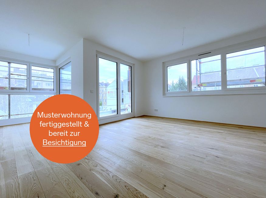 Bei der Ausstattung der Wohnungen wird auf langlebige Materialien, wie hochwertige Böden und Markenprodukte in den Bädern, geachtet. Die Holzfassade im Eingangsbereich des Gebäudes bringt einen warmen, natürlichen Akzent in die modernere Architektur.